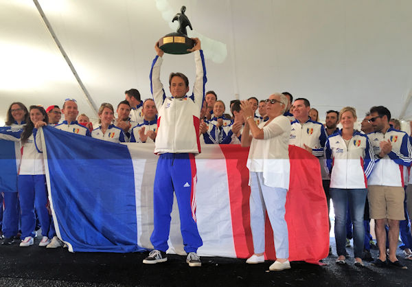 These were followed by the presentation of the Patrick de Gayardon Trophy, created in 2003 by France in memory of Patrick de Gayardon and his influence on the progression of our sport. This trophy is presented at each Mondial to the Nation which gains the most points for the medals won during the whole of the Mondial. France with 50 points in total (Gold=6, Silver=4, Bronze=2), won for the third time in a row.