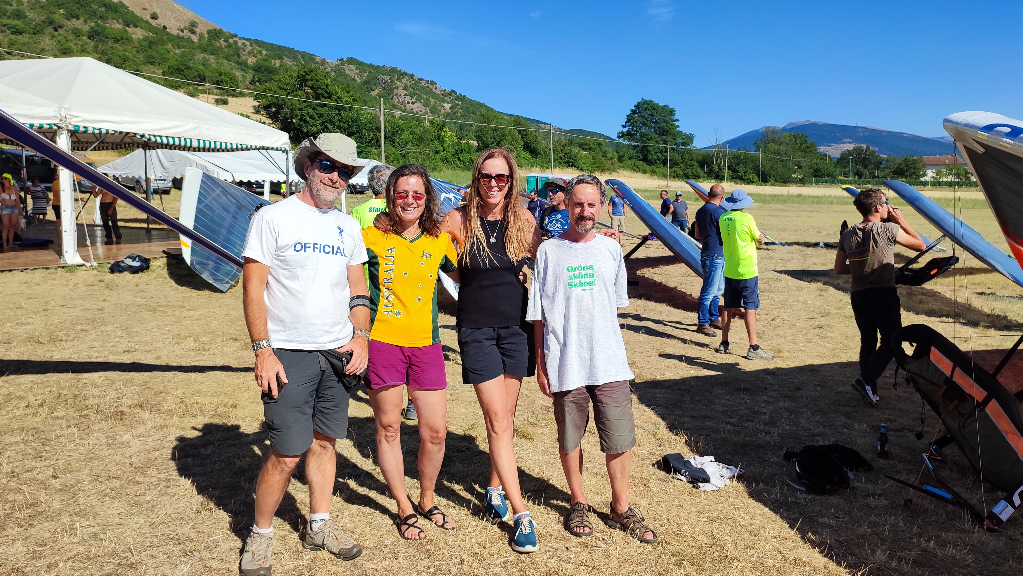 The FAI International Jury team working at the 21st FAI European championship in Sigillo Italy consists of Hadewych Van Kempen NDL, Thomas Senac FRA, and the president Fabio Loro ITA.