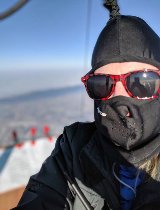 I launched at 07:45Hrs CST/ local time, just four minutes after sunrise from the parking lot of a local school in Mitchell, South Dakota, USA. I steadily climbed for 30 minutes to an altitude of 15,000 feet (4570 meters) Mean Sea Level where the temperature was -30⁰C. Shortly after I reached altitude, broken clouds began to form under me. Experiencing a VFR flight over clouds in a balloon was truly unique and not a flight I am likely to ever forget. To float high above the clouds was an entirely surreal feeling. All was very quiet except for the noise of the burner and the occasional airplane overhead.