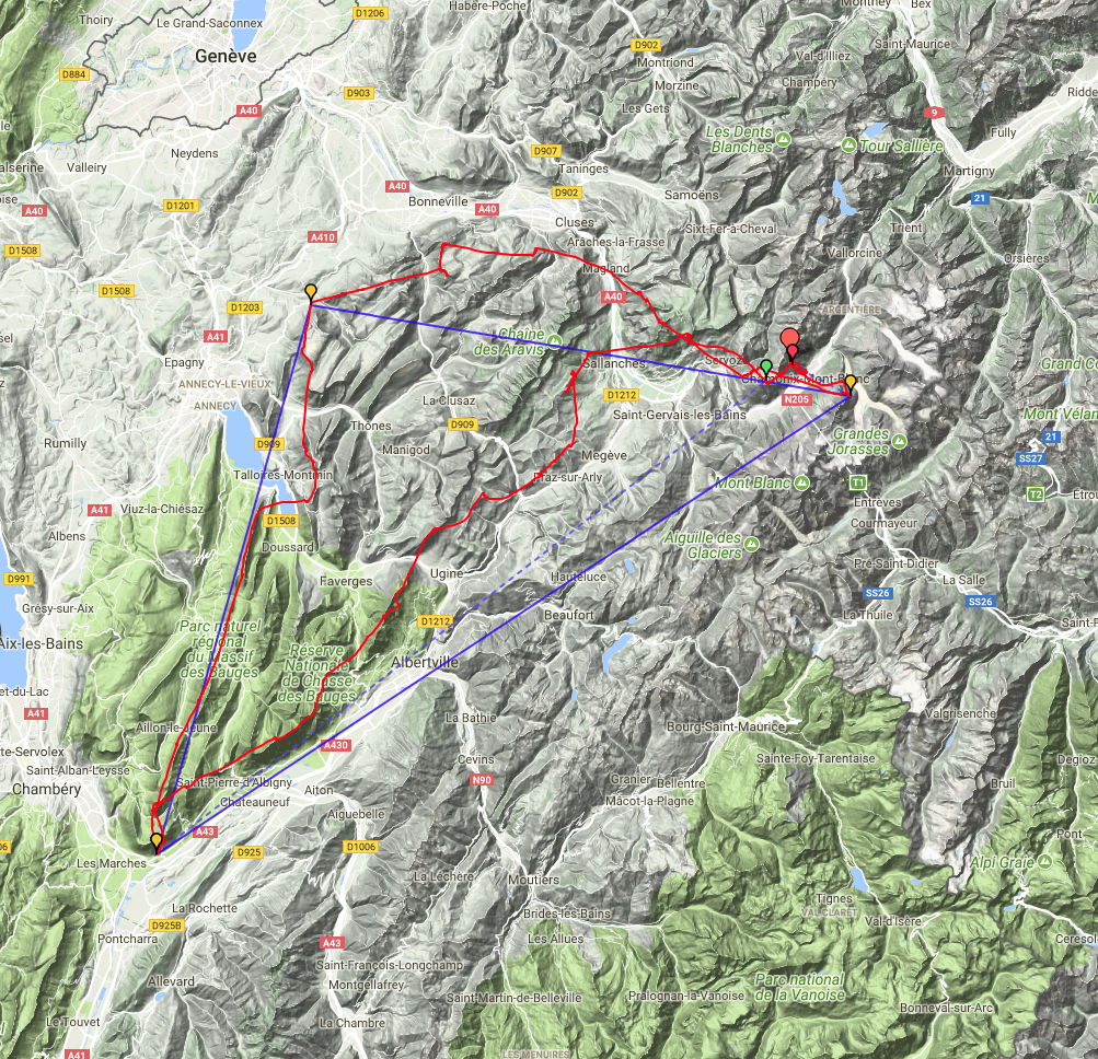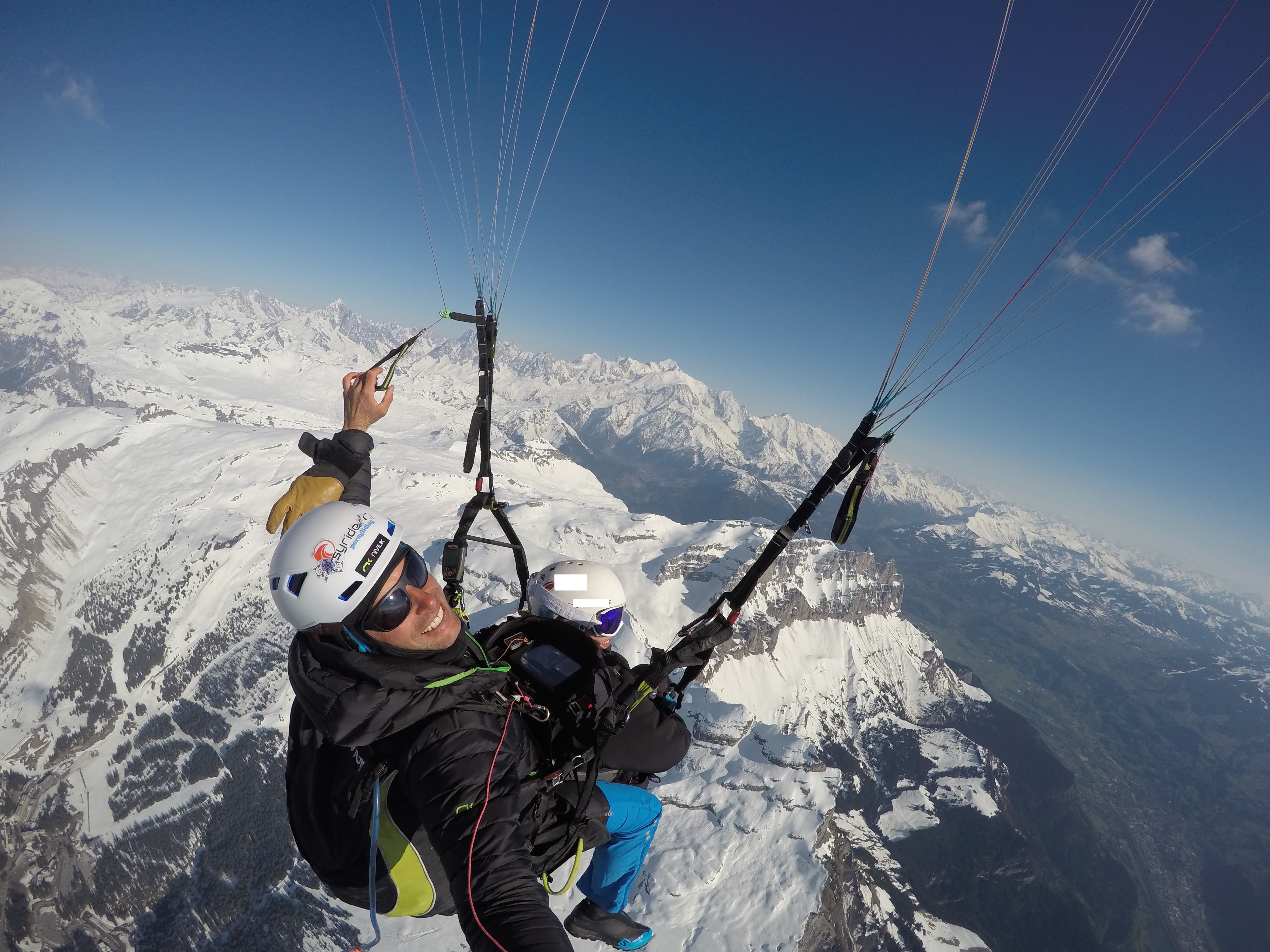 I chose to break the FAI triangular course in Chamonix because I love the beauty of this place and as a professional Alpinist who I am, I have a special connexion with those mountains around the place. My previous record attempt was in the same place, Chamonix, the day before with FAI 169 km. For the record, conditions were the best I could dream, no wind and good instability from the ground to the clouds, which is very helpful when you're flying with a tandem who is more difficult to use in the thermals and to climb up.
