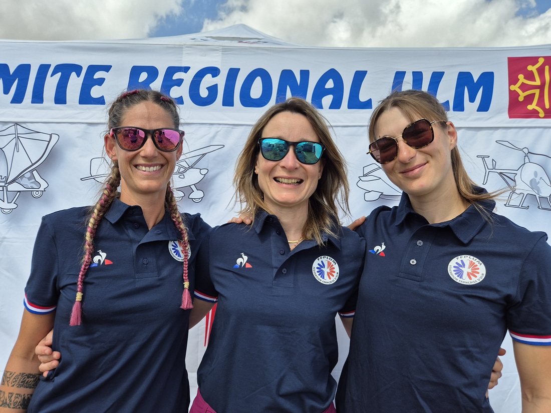 L-R: Morgane Planton, Sandra Moreels and Séverine Deutsch from the French team at the FAI World Paramotor Endurance Championships 2024.