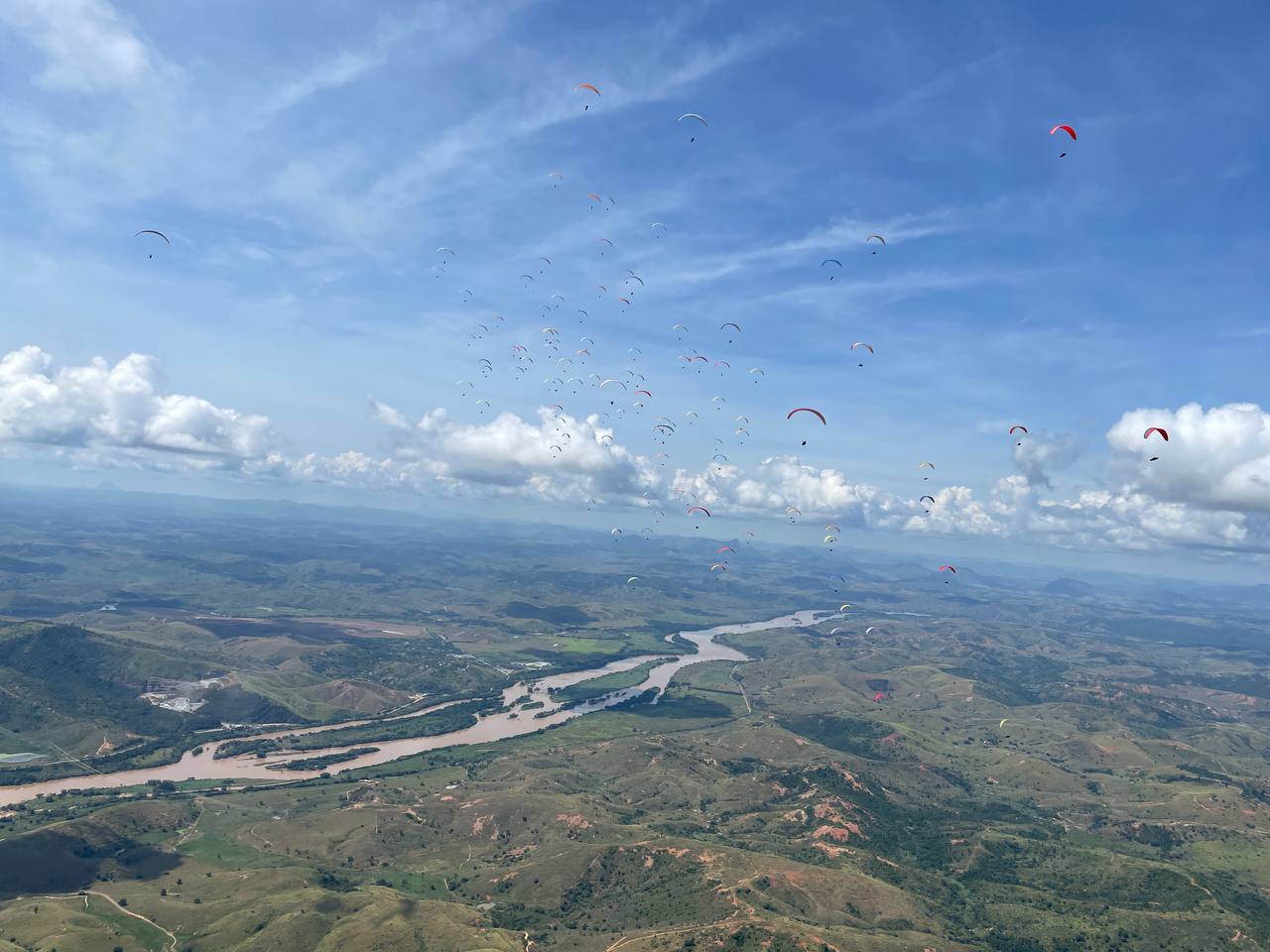 Day four of the 4th FAI World Paragliding championships was considered by some of the pilots one of the most difficult tasks. A triangular task of 95 km race to goal was set across the river valley. The goal was a 200 cm cylinder which facing-optimized-route border was "protected" by wide ridge-like hill. You could enter it in any direction but you need to be high enough to get over the hill. The part of the optimized route also crossed the "blue" that made pilots search for alternative solutions.The winning tactics turned out to take a longer route but follow the cloud line. And of course, getting high enough, in the end, to get over the hill. 92 pilots in goal. The overall was totally taken by Brazil with Saladini, Barros, and Oliveira, while in female Violetta Jimenez from USA managed to get to the second place with Marcella Uchoa in the first and Isabella Sales in the third.