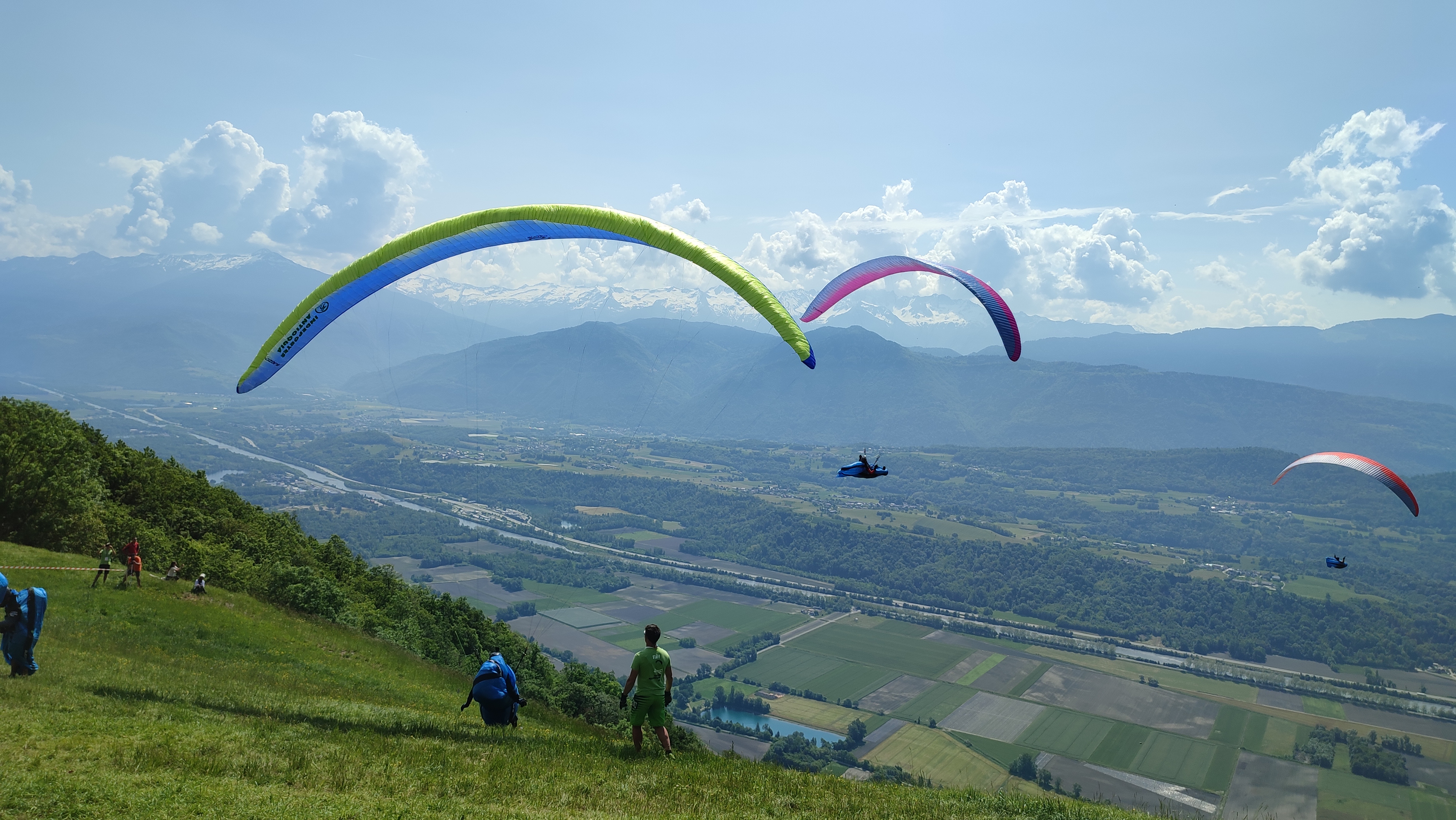 After 2 days of rain and wind, the sun returned to Savoie. Still in the morning the ceiling kept rather low about 1500 with a raise over 2000 closer to 2-3 p.m. Also every time with a risk of rain in the range from drops to showers. The pilot flew a task on each of the 5 following days - 400 km in total. And wherever they launched the landing was always at HQ in Chamoux-sur-Gelon.