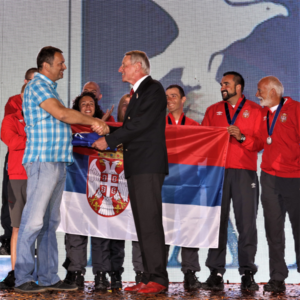 The FAI President closed the event and passed the FAI Flag to the organiser of the next World Championship, Zeljko Ovuka of Serbia (on photo below).