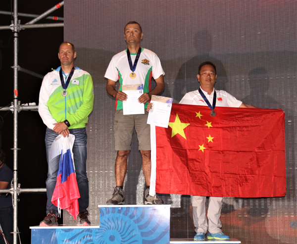 The individual winner was Tzvetan Tzolov from Bulgaria who scored a total of just 7 centimetres, just one centimetre ahead of the second place tied between Matjaz Sluga (Slovenia) and Haipeng Chen (China). In the final tiebreaker fly off, Sluga prevailed for the Silver medal position after maintaining his record of scoring no more than 3 centimetres on every one of his competition flights.