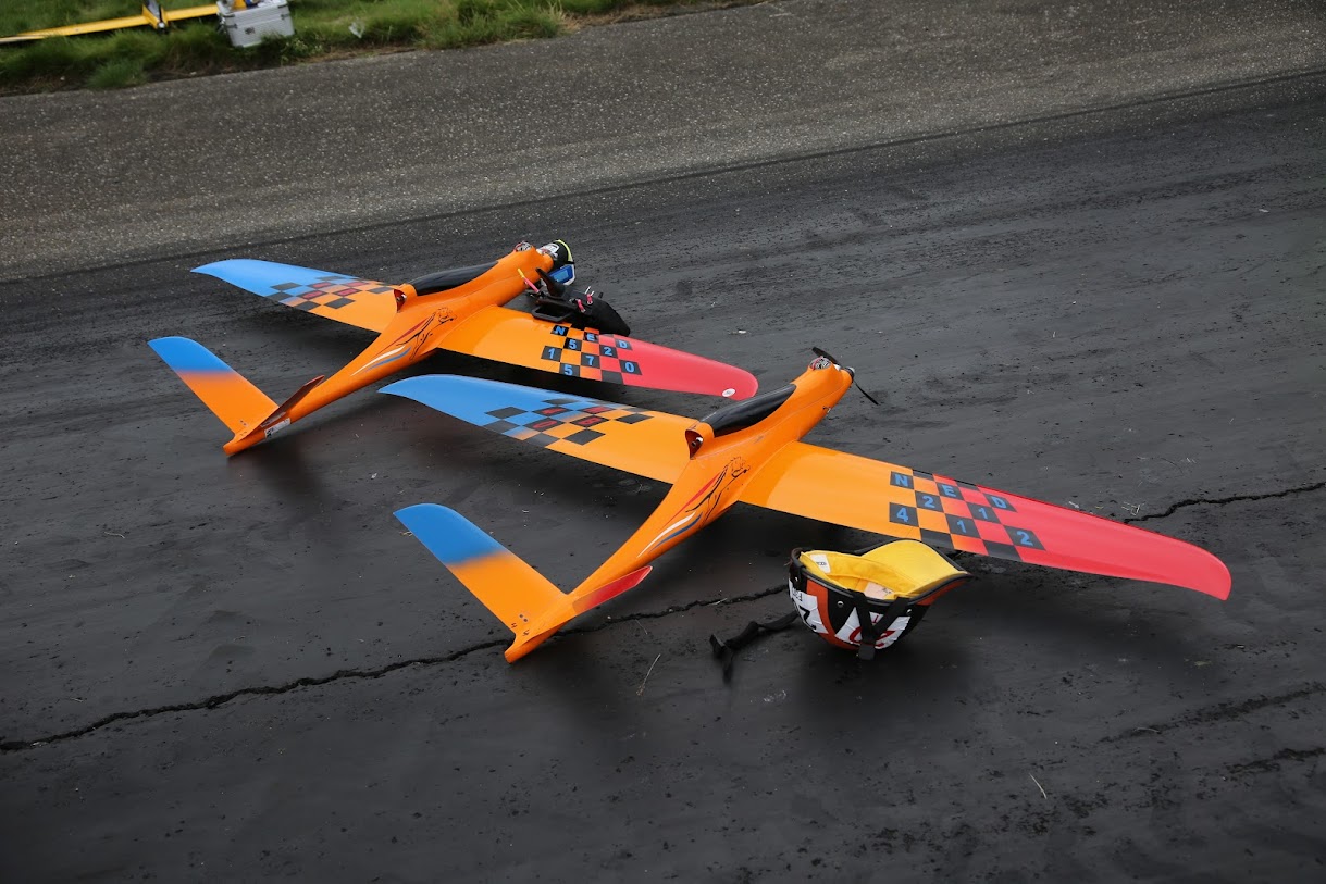 Despite rainy weather, there were 12 rounds in each class at the 2023 FAI F3DE World Championships for Pylon Racing Model Aircraft in Drachten, Netherlands, where the home team claimed the champion title in F3E, and visitors from the USA claiming gold in F3D.