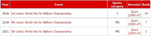 At the 2021 Juniors World Hot Air Balloon Championship, Russia at was represented by two pilots: Dmitry Zhokhov and Vladimir Ermakov (competition numbers 40 and 39).
