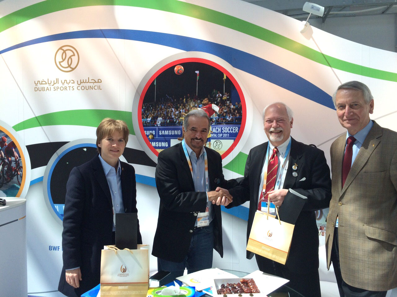 Meanwhile in Sochi, at the Sport Accord Convention, President Dr. John Grubbström, Executive Director Frits Brink and Secretary General Susanne Schödel met Dubai Sports Council Secretary General His Excellency Saeed Mohammad Harib (below). Sharing their enthusiasm for the Games, they rejoiced at the wonderful opportunity the event provides for the promotion of air sports and the city of Dubai.