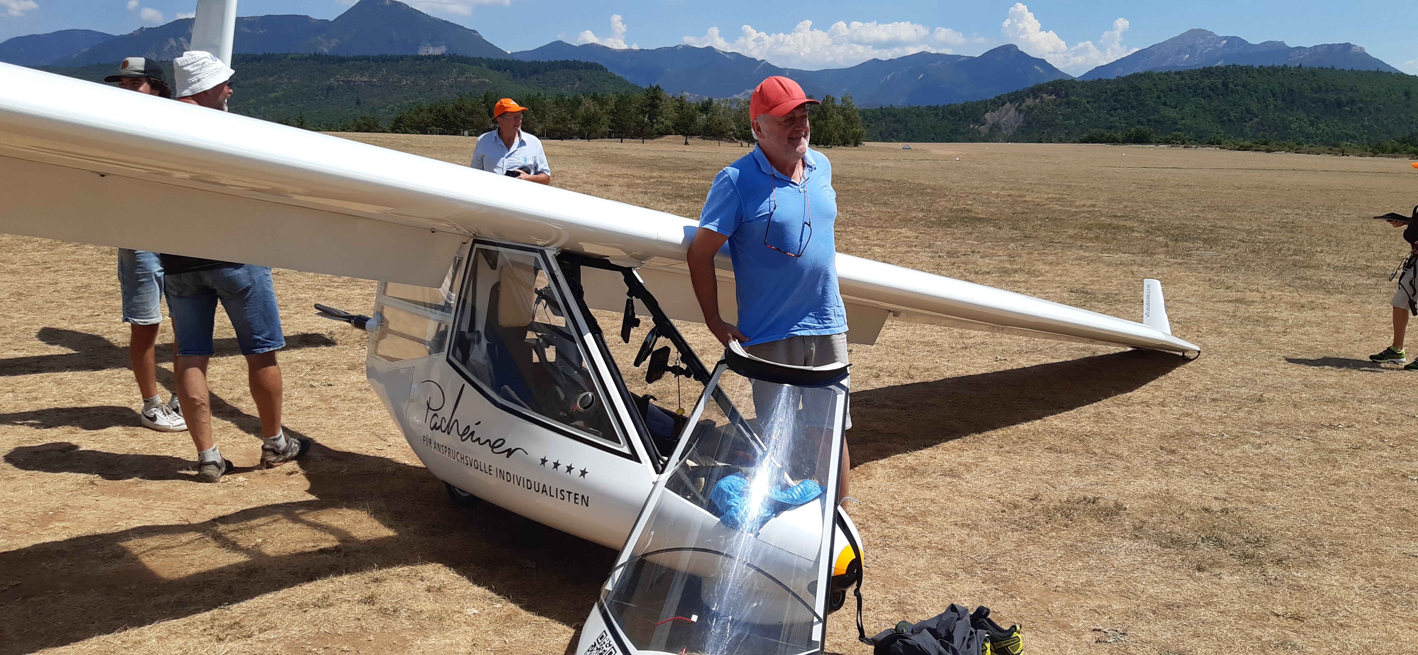 Louise Joselyn reports: On July 27 the first task was set - 136.2 km. Start opened at 12:30. Well, that was fast! The organisers estimated maybe 3 hours for the task, but the first pilot, Manfred Ruhmer (AUT), landed back in goal on his Swift-Light in less than 2 hours. He was swiftly followed by countryman Franz Pacheiner in the Archaeopteryx, with Jacques Bott (FRA) landing third. Within 10 minutes most of the rest of the field had also landed at goal.