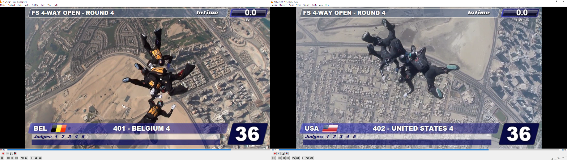 The event that is causing all the excitement today is the Formation Skydiving 4-Way both Open and Female – with Air Speed, USA head to head with Hyabusa, Belgium and tied after4 rounds on 114 and in the last round they both did 36 points and the freeze frame was identical and in the fifth round both scored 28 points clean – this could go down to the wire – check out the tie break rules! Interestingly so far they have both scored 142 points each, with Hyabusa 100% clean and Air Speed with 1 bust.