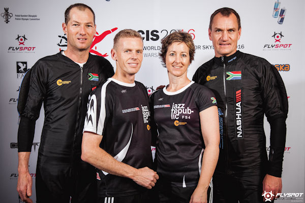 Twitter Facebook 09 Oct 2016 WCIS - 2016, Delegation Page - South Africa S O U T H A F R I C A Formation Skydiving 4-Way Open Competitors PictureSouth Africa Jazz RepublicClaire King Dirk Venter Colin Rothman Paul Marcellin