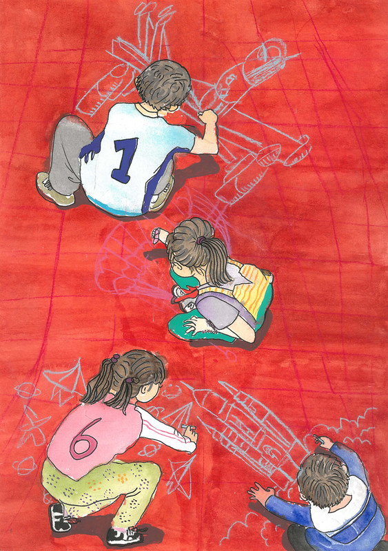 Zhuoyu Duan's charming picture captures girls and boys letting their imaginations soar into the skies