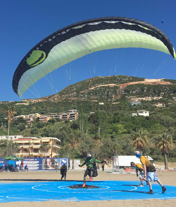 Anton Svoljsak of Slovenia has seen off the chasing competition of Permadi Chandra (Indonesia), Jirasak Witeetham (Thailand) and Tomaš Lednik (Czech Republic), all tied at three consecutive zero – a World Record already – and has achieved one more zero, four consecutive!, by landing on a 2 centimetres diameter target at the 9th FAI World Paragliding Accuracy Championship in Vlora, Albania.