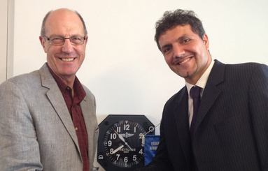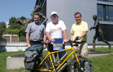 Cyclist stops in Lausanne FAI Head Office on his way to visit all the gliding sites in the world