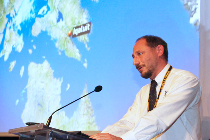 Pilot Sergey Ananov from Russia (right) gave a vivid account of his attempt to circumnavigate the globe on a helicopter which abruptly ended when his helicopter crashed into the sea between Canada and Greenland. He told the Conference how he survived on an ice floe keeping polar bears at bay before being rescued by the Canadian Coast Guard.