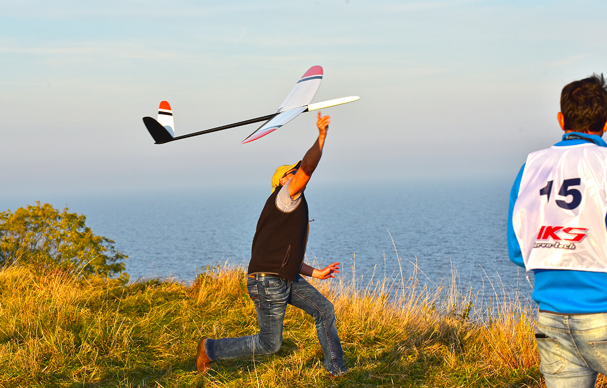 Hand Launch R/C Gliders is a class with growing popularity. In this event, the competitors fly relatively small gliders, with a maximum wingspan of 1,5 m, launched from the pilots' hands. In recent years the pilots used a method similar to discuss toss to launch the models.