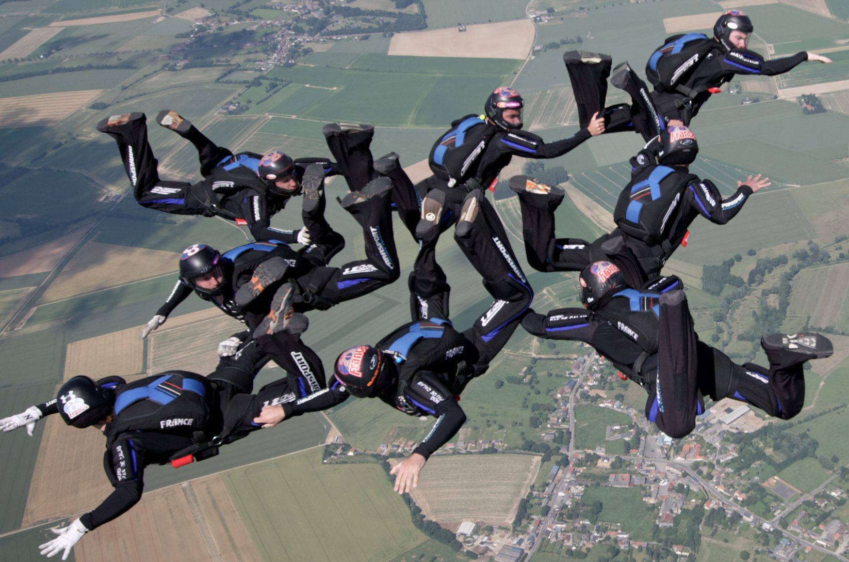 Formation Skydiving is the skill of building formations or patterns in freefall. The discipline is executed either in the prone position (with belly to earth) or vertically (with either feet or head towards earth).